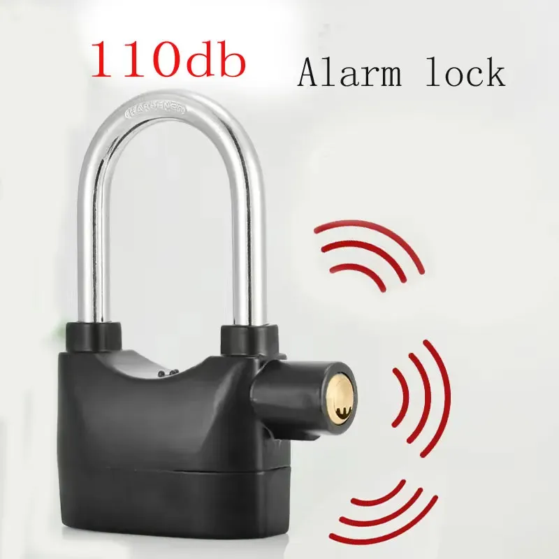 Universal Security Alarm Lock System Waterproof Black Anti Theft Siren 110Dba Alarm Anti Padlock Thickened Shackle Padlock with 3 Keys 1Pcs Polished Finish